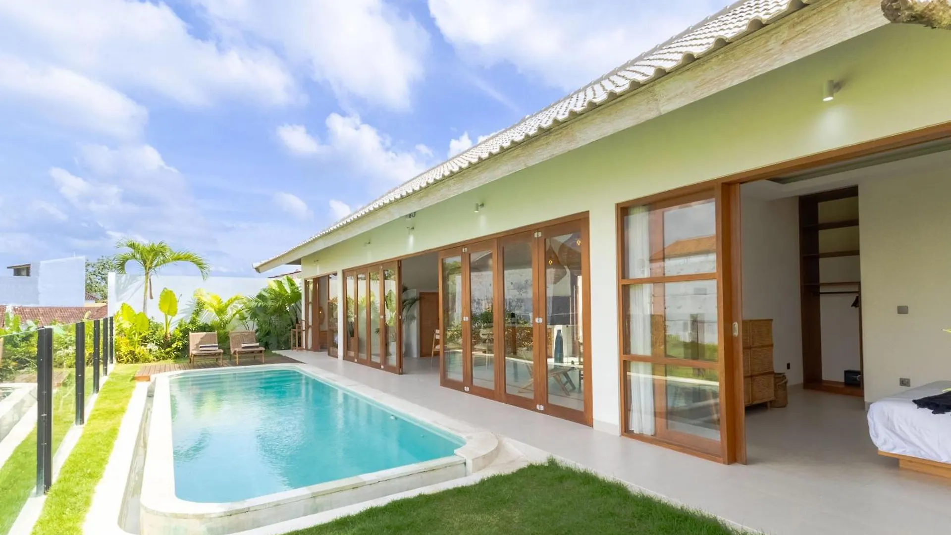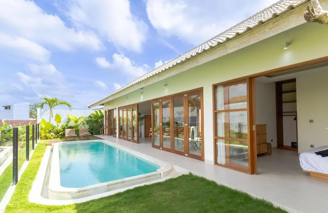The 2-bathroom villa is nestled in the Padonan district of Kerobokan, 2.2 miles from Jalan Pantai Berawa.